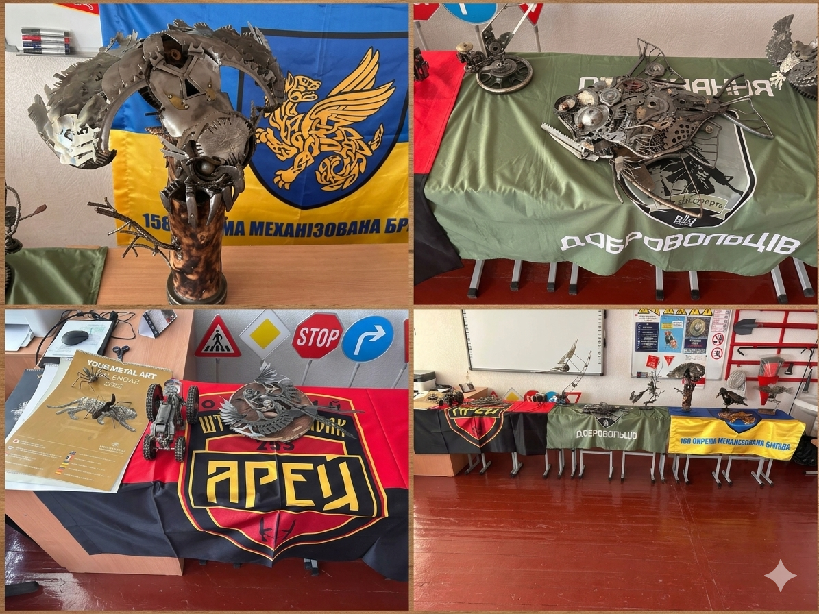 ✨ Особлива подія для нашої громади! Ми неймовірно раді, що Сергій привіз свою виставку до нашого Количівського ліцею. Це була не просто експозиція, а справжня зустріч із прекрасним у непрості часи. Наші учні мали унікальну можливість на власні очі побачити ці залізні шедеври та поспілкуватися з майстром-захисником.