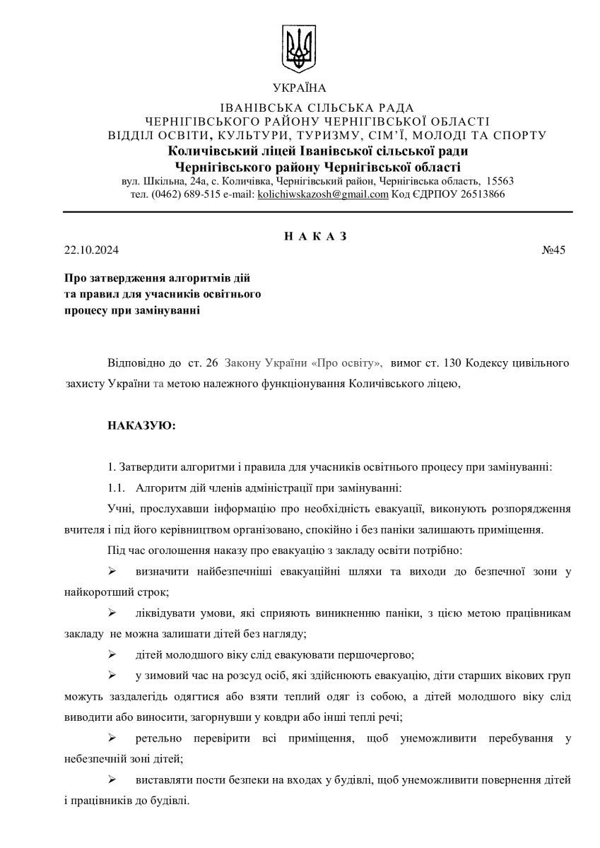 Права та обов’язки учасників освітнього процесу в період воєнного стану в Количівському ліцеї