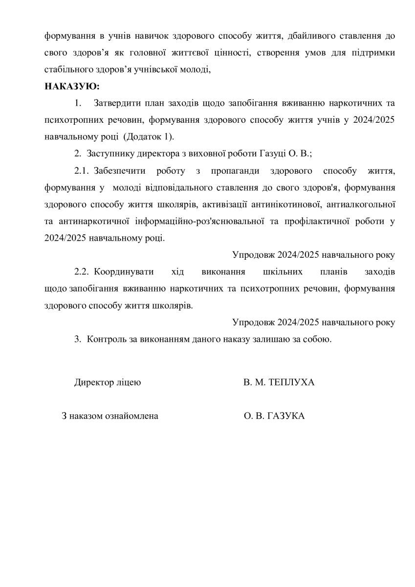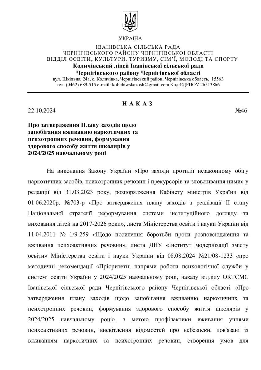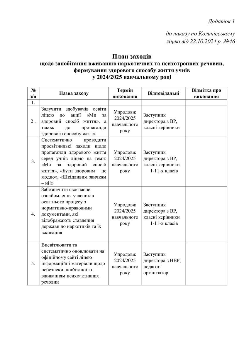 План заходів щодо профілактики булінгу по Количівському ліцею 2024-2025