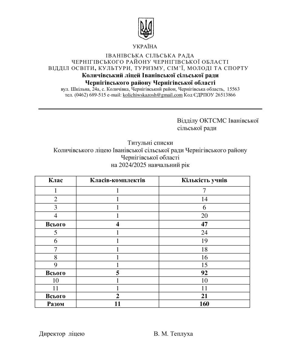 Количівський ліцей Іванівської сільської ради Чернігівського району Чернігівської області