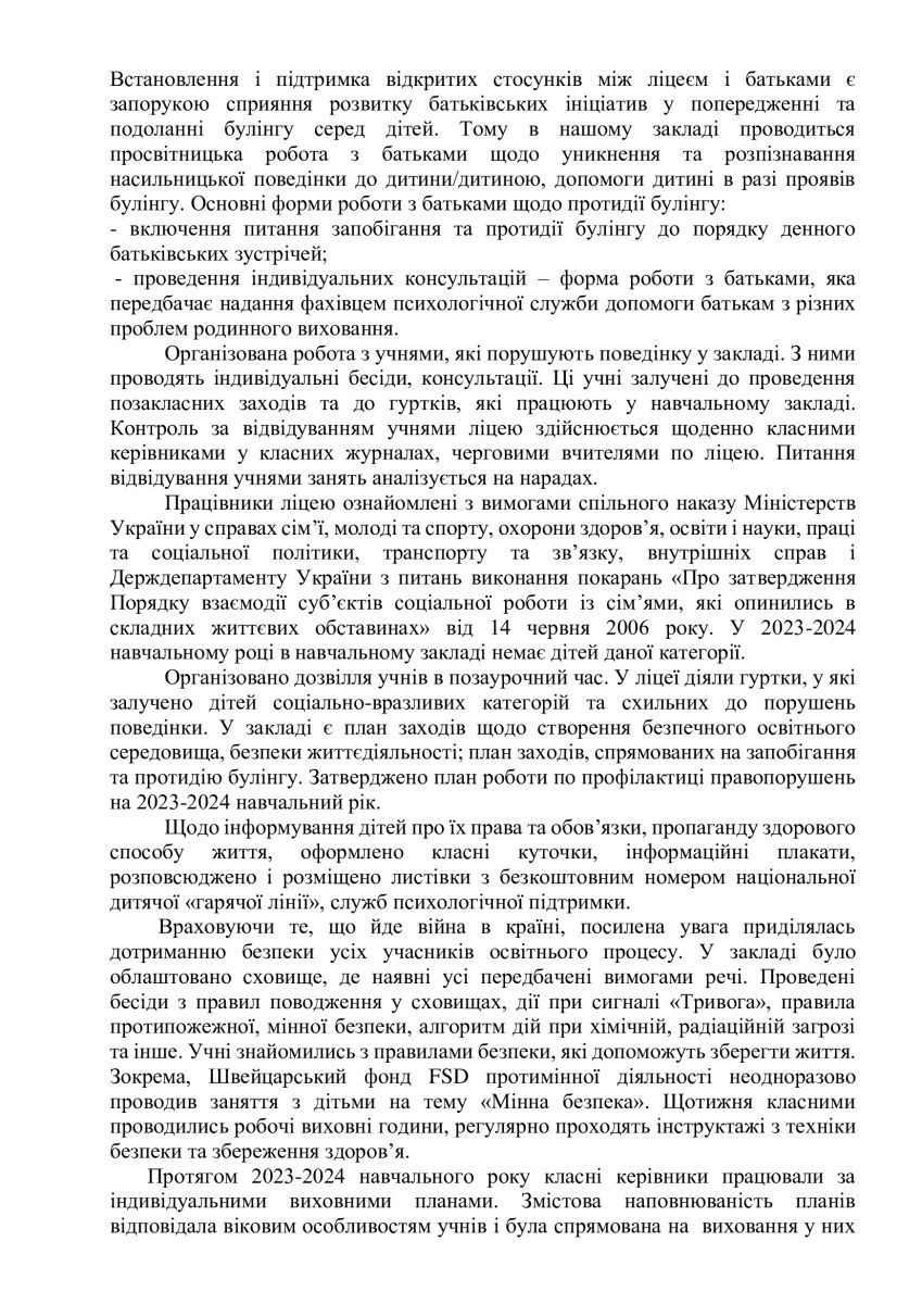 План заходів щодо профілактики булінгу по Количівському ліцею 2024-2025